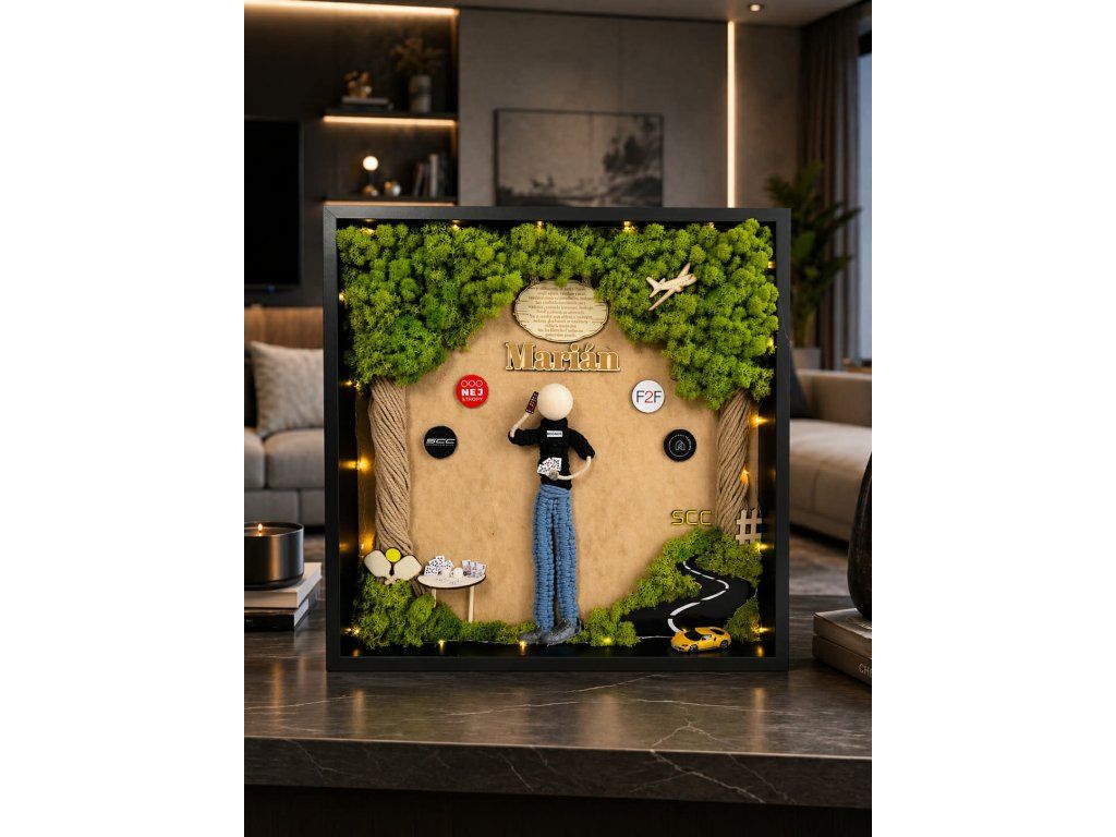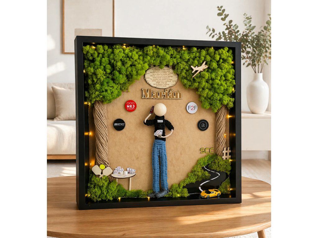 Mechový strom v obraze nebo mechová tráva pod nohami.