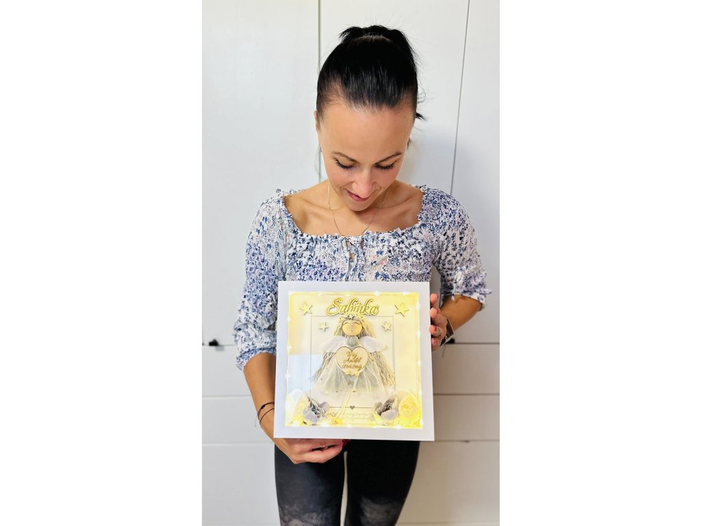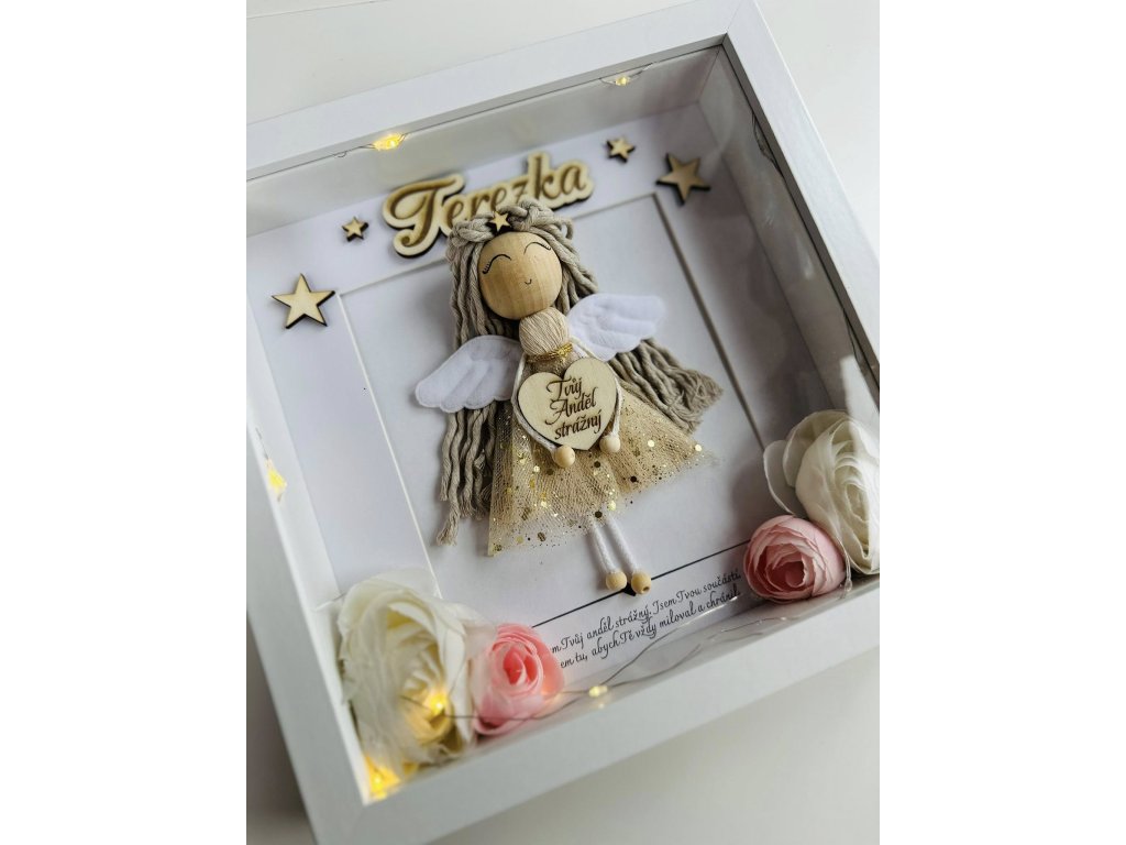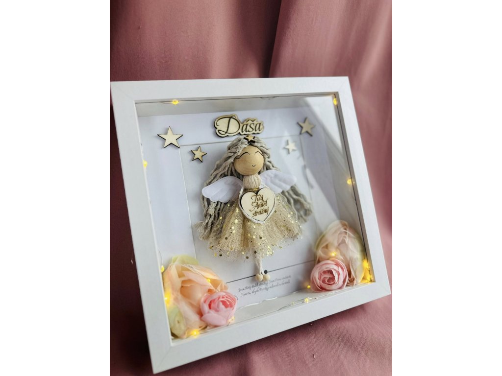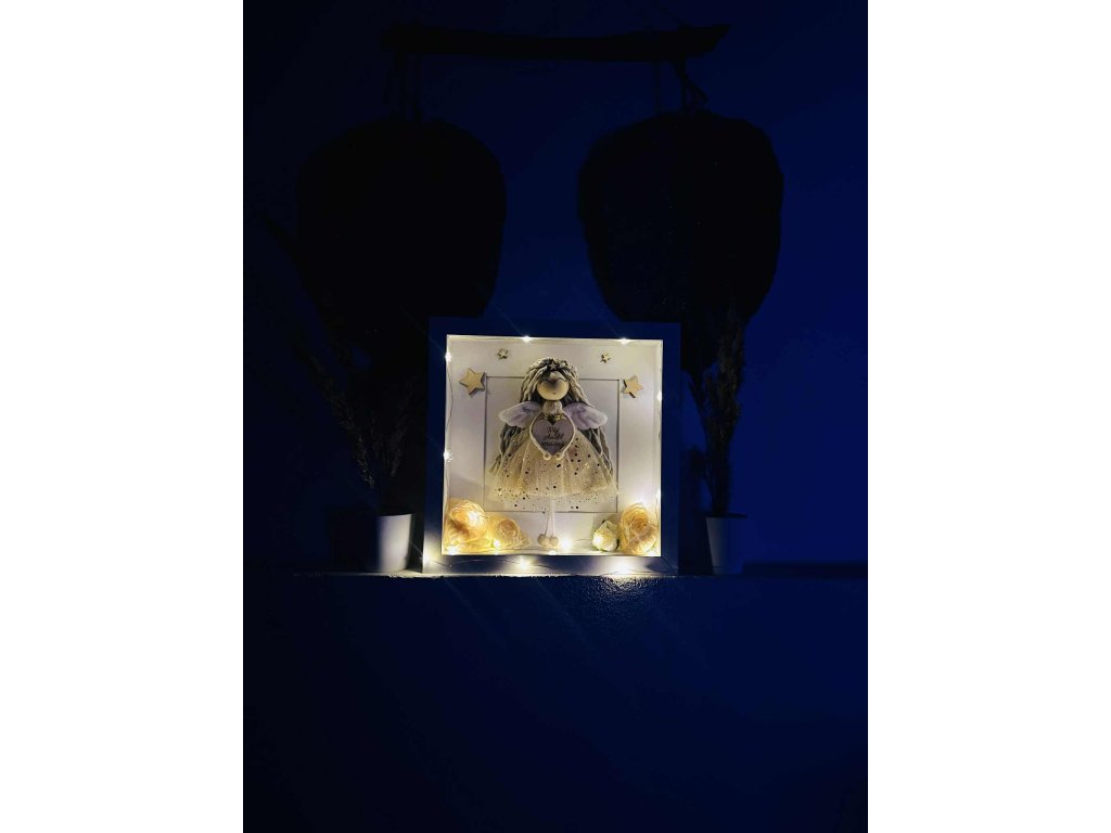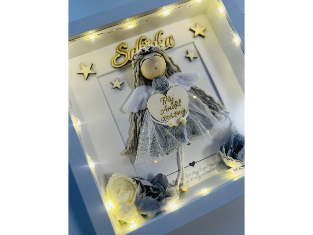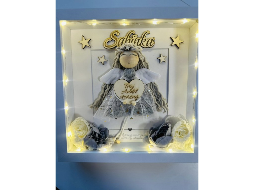 Anděl vytvořený speciálně se jménem a led světýlkami.