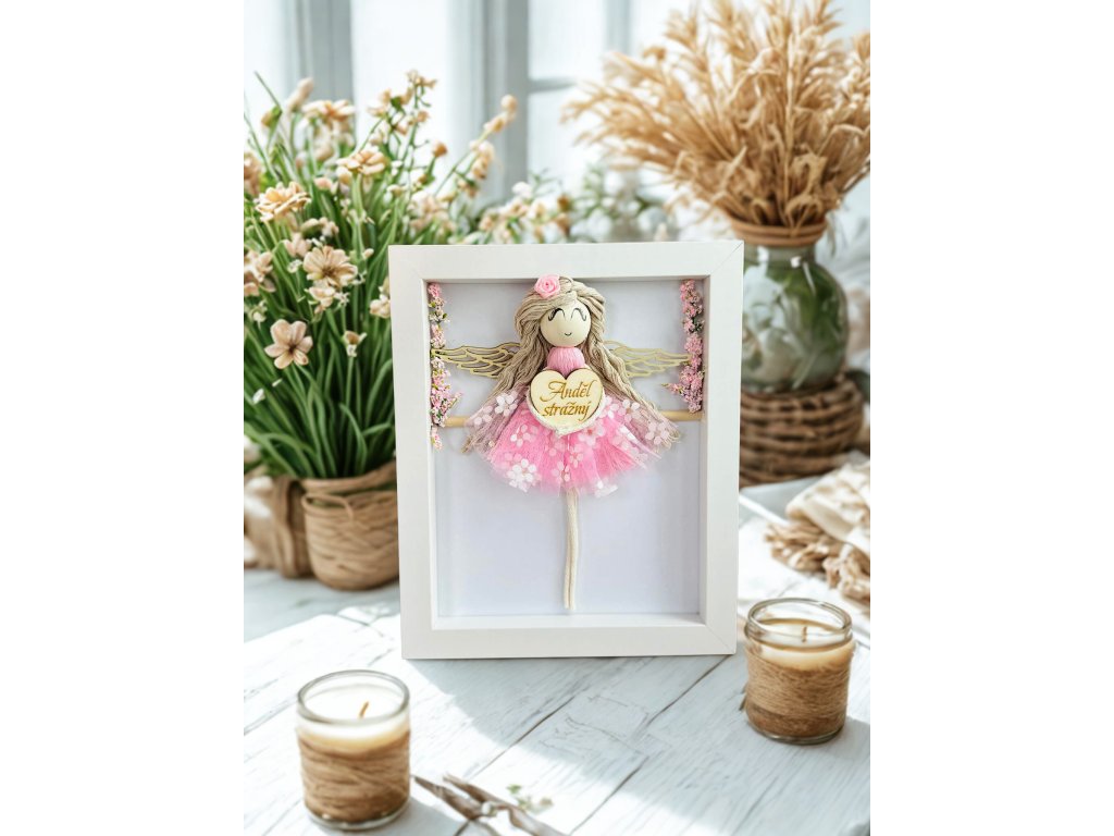 Anděl v hlubokém rámečku bílém