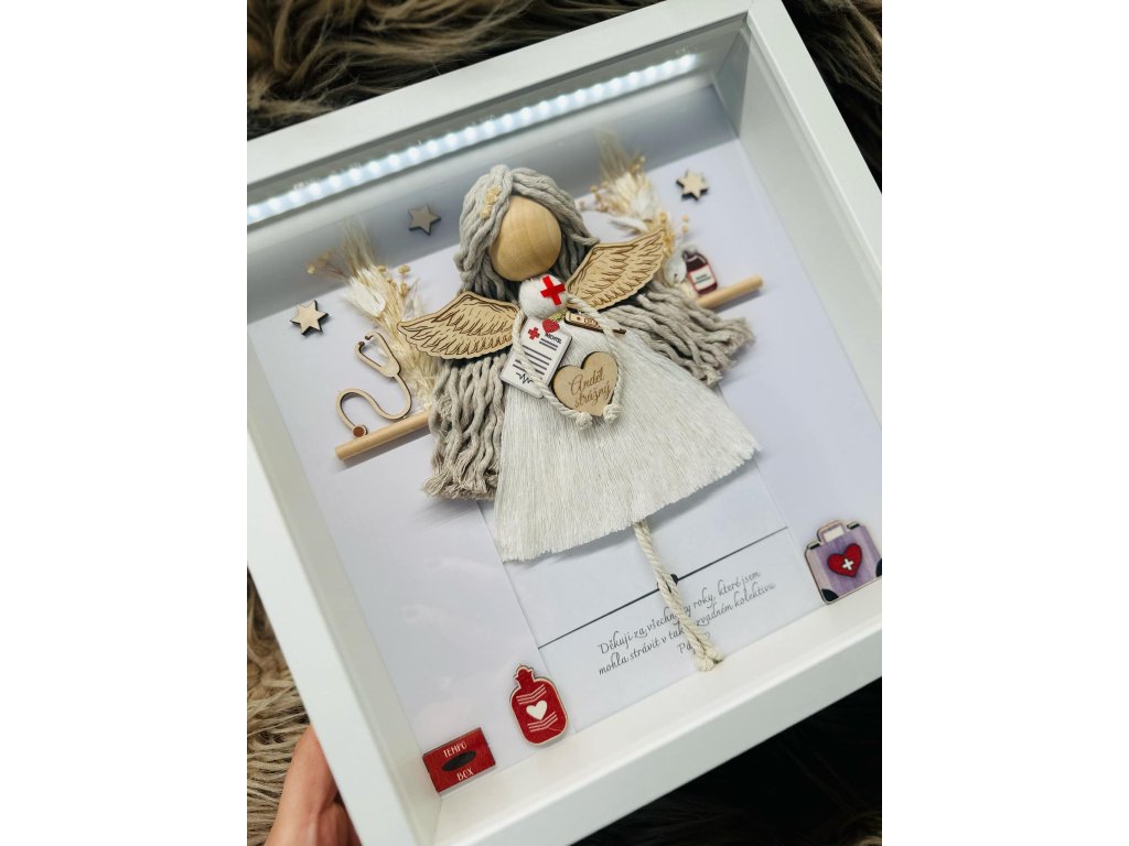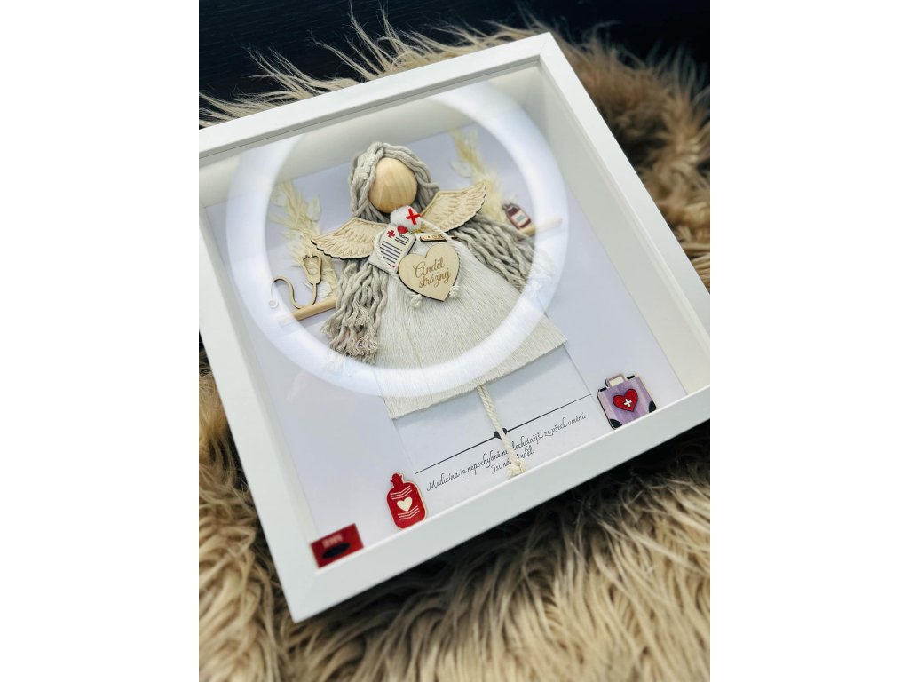 Tematický anděl v rámu se sklem/plexi