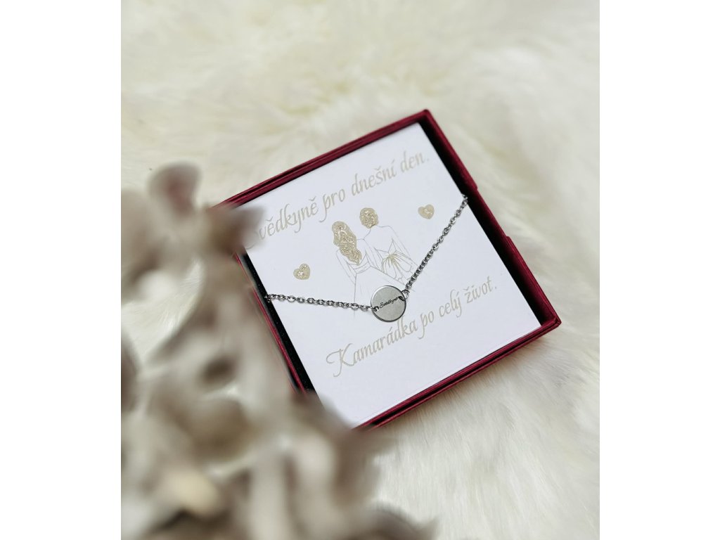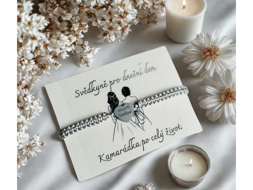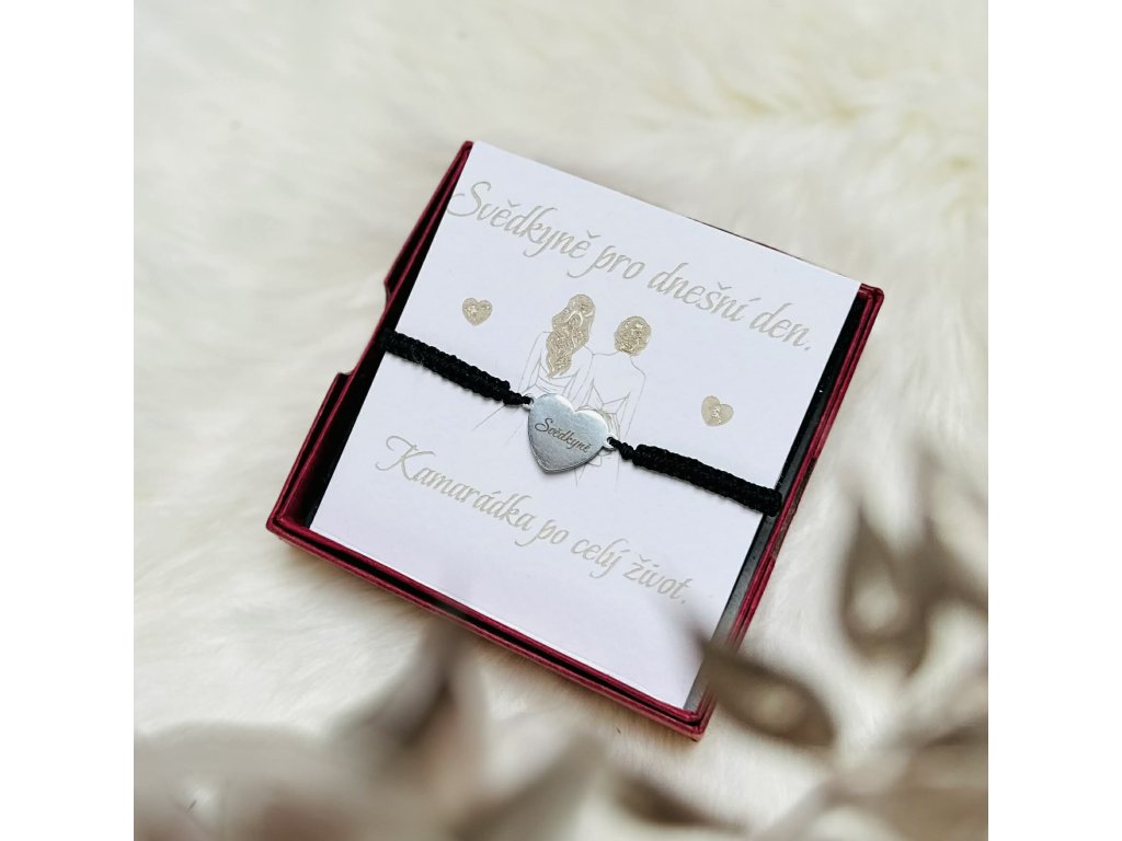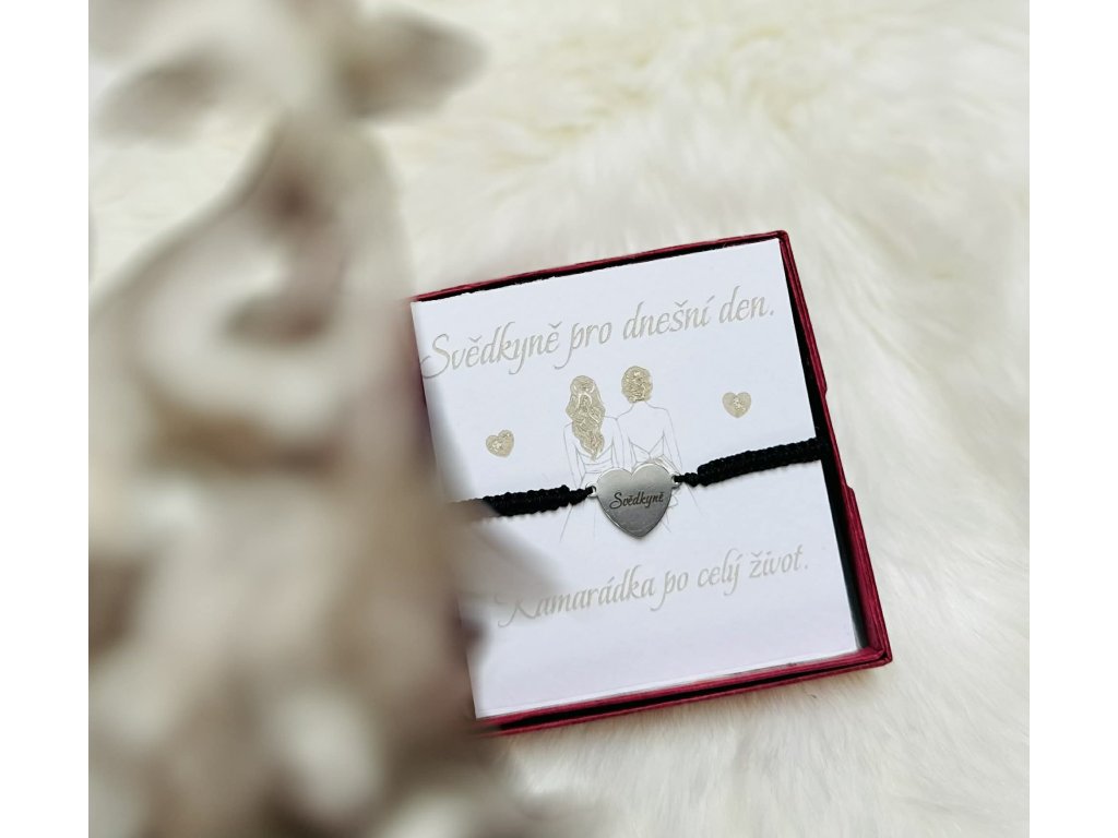 Provázkový macrame náramek pro svědkyni. Text na mezičlánku lze změnit dle Vašich představ (napište prosím do poznámky na konci objednávky)