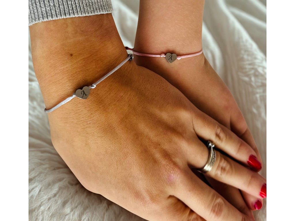 Náramek v kombinaci chirurgická ocel a šňůrka. Lze vypsat iniciály nebo symbol. Prosím vepsat do poznámky.