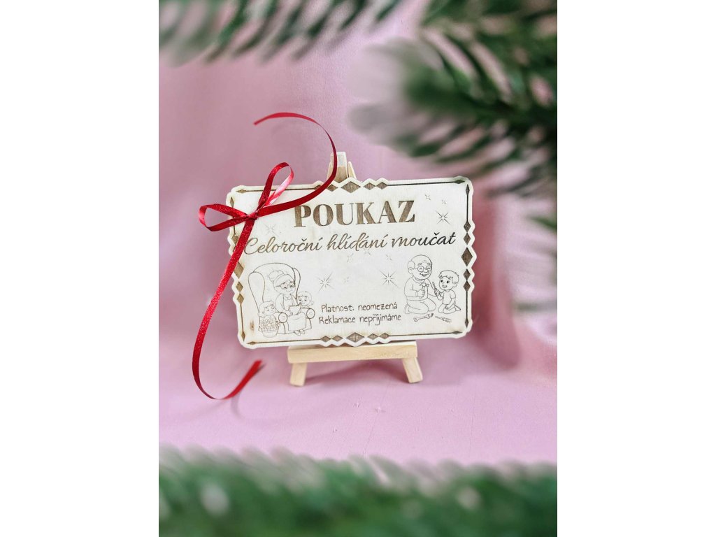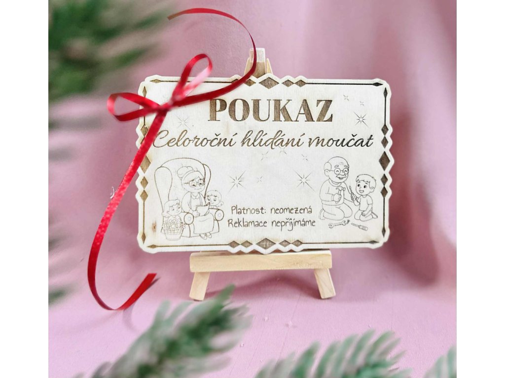 Vtipný poukaz pro babičku a dědečka, jako dárek k Vánocům i narozeninám.Dřevěná překližka s textem.