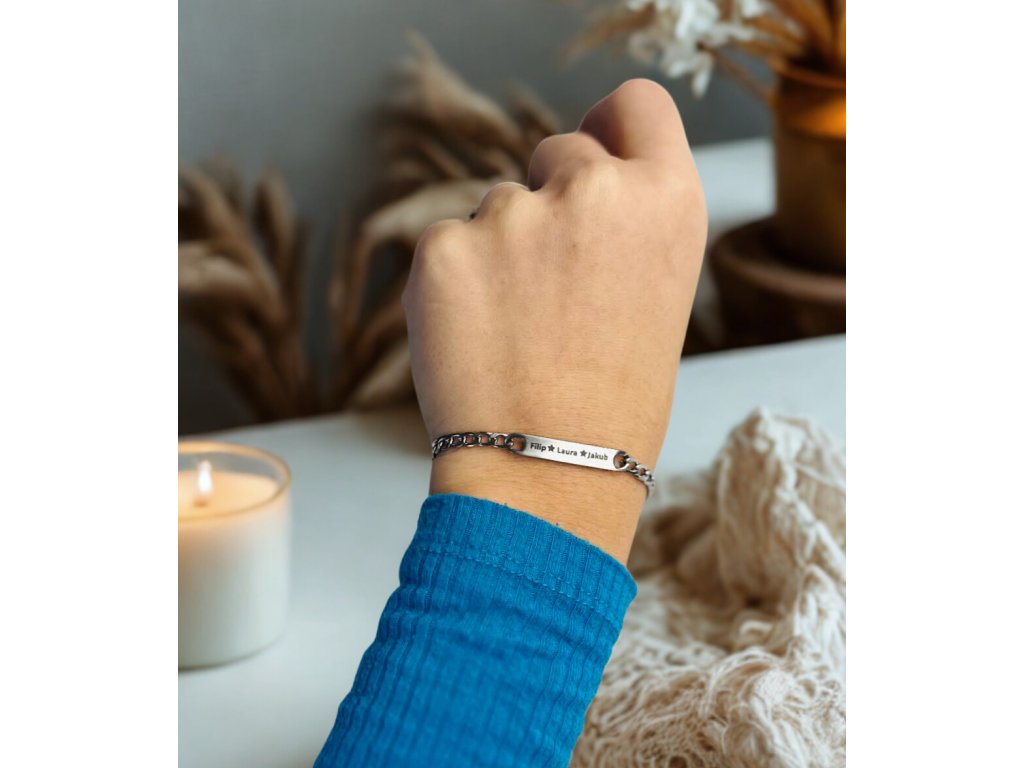 Náramek v kombinaci chirurgická ocel. Náramek je na zapínání.
