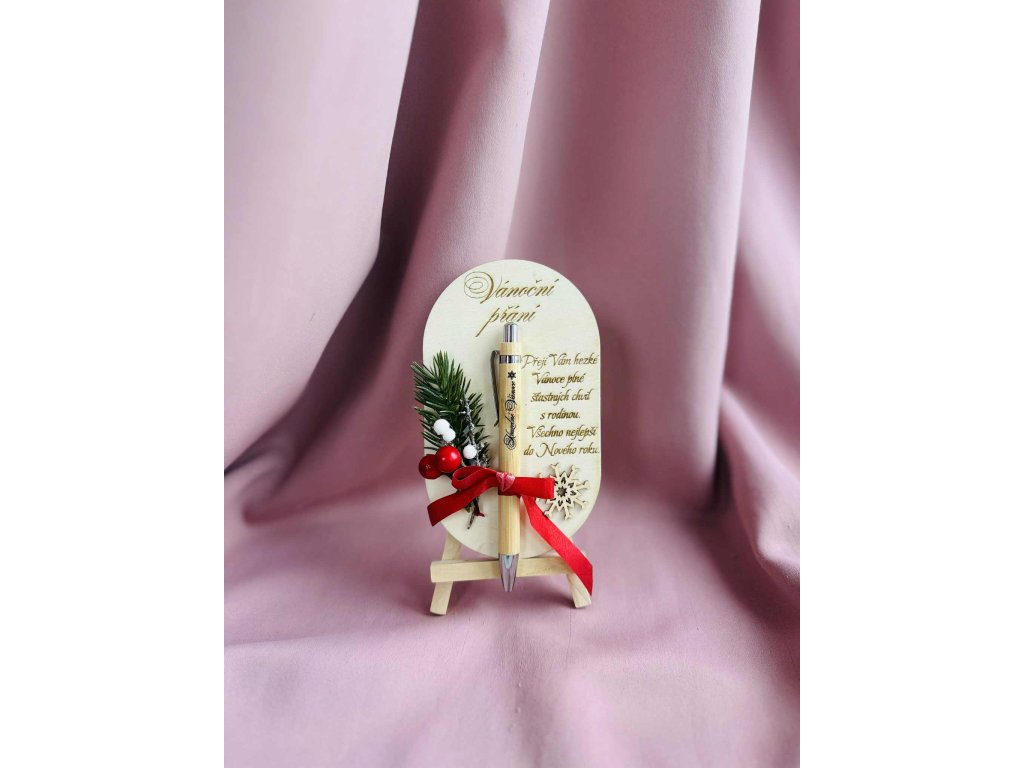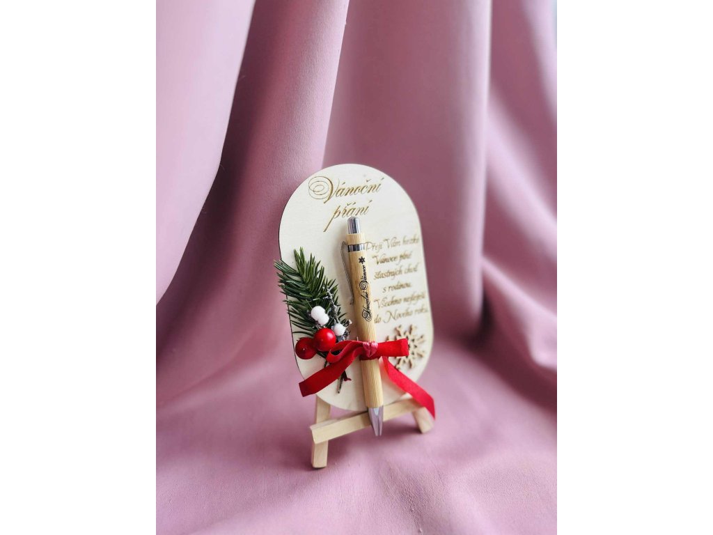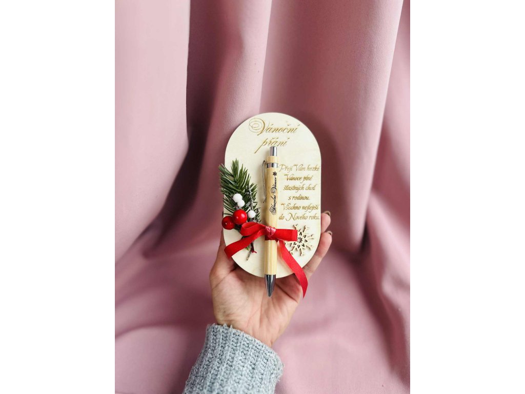 Text na propisce- speciální podle druhu kartičky- "kouzelné Vánoce"....."Krásné Vánoce"..... Jméno